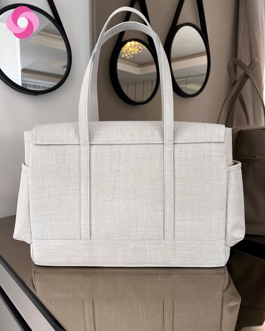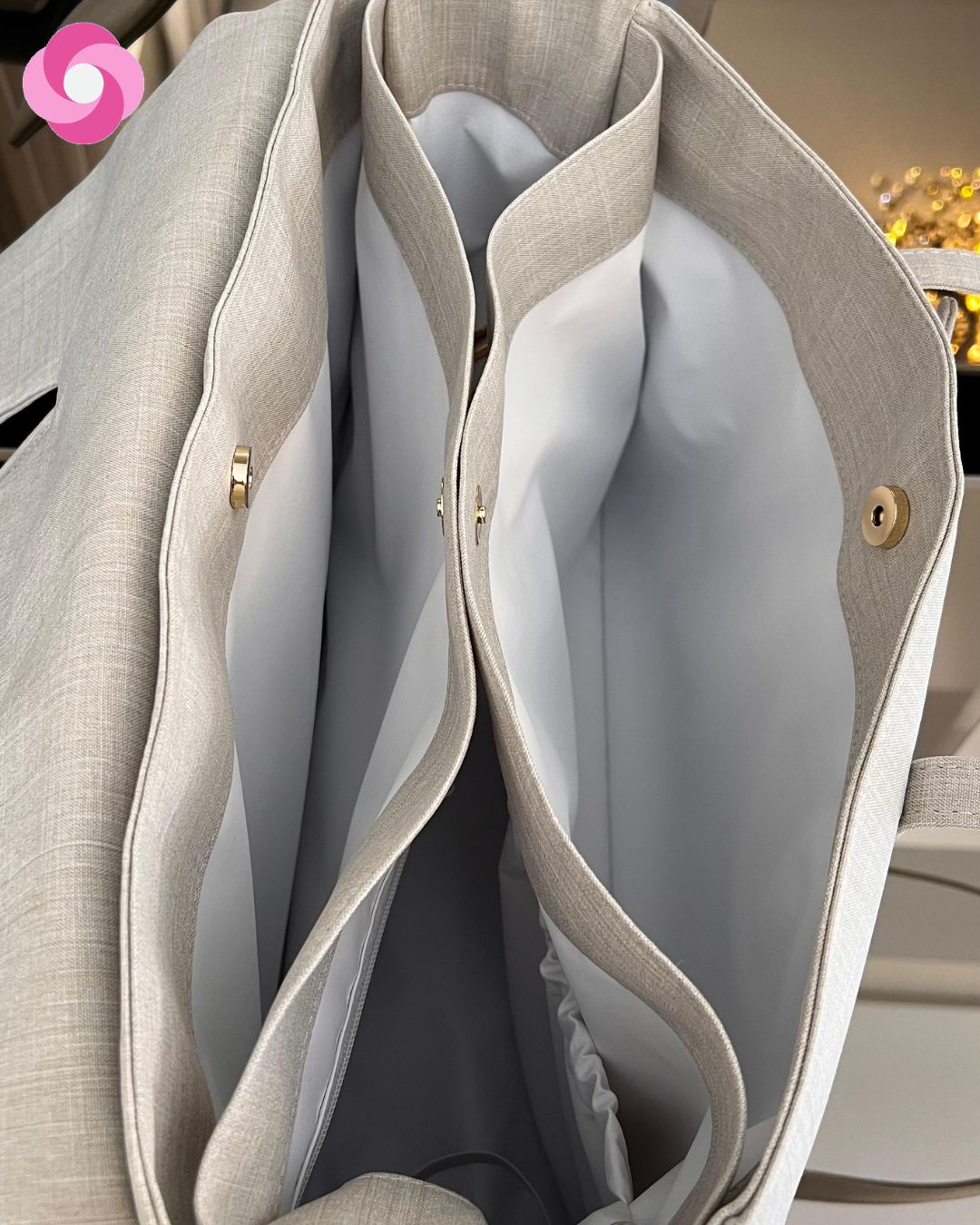 Essa é a bolsa Milano! Pensada especialmente para as mães, que mesmo na maternidade não querem sair do estilo e também aquelas que gostam de bolsas grandes (alô mamães de gêmeos)! Ela tem alça dupla, fechamento em aba com botões de imã por aproximação… É só encostar e ela fecha… Praticidade que fala né?!! Também acompanha alça transversal!