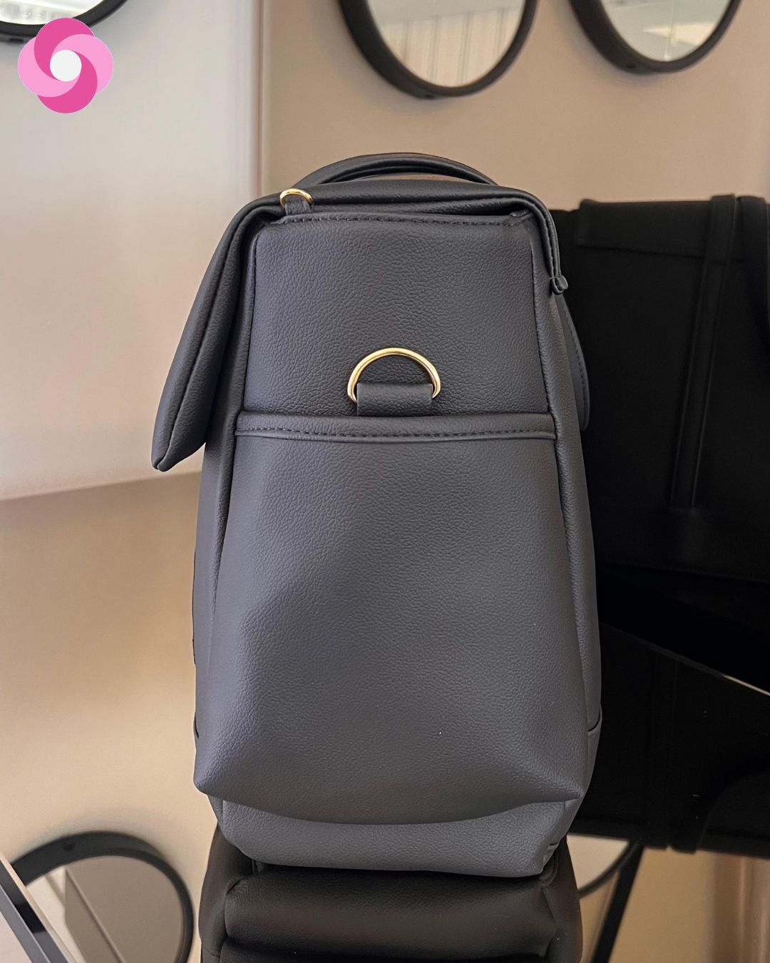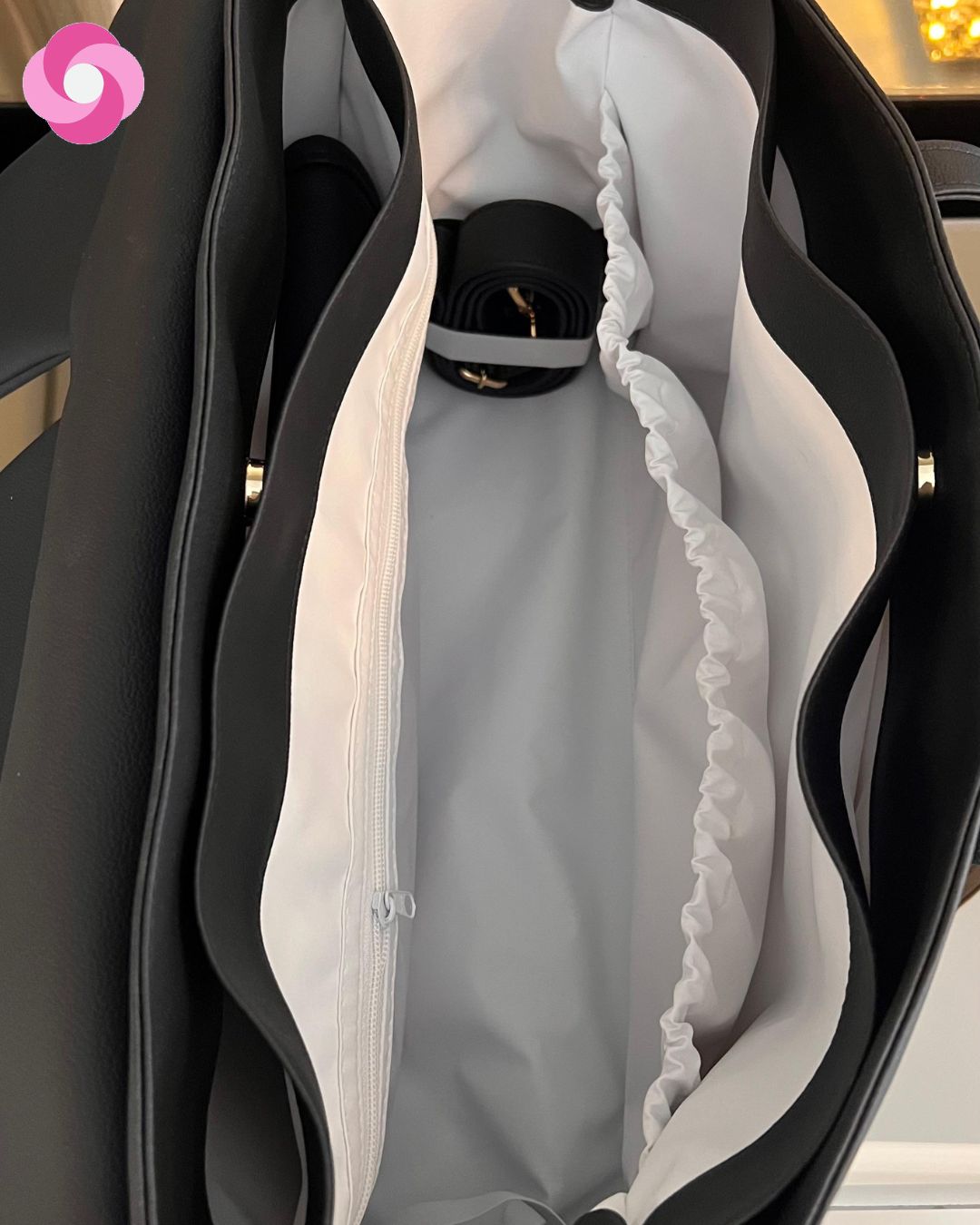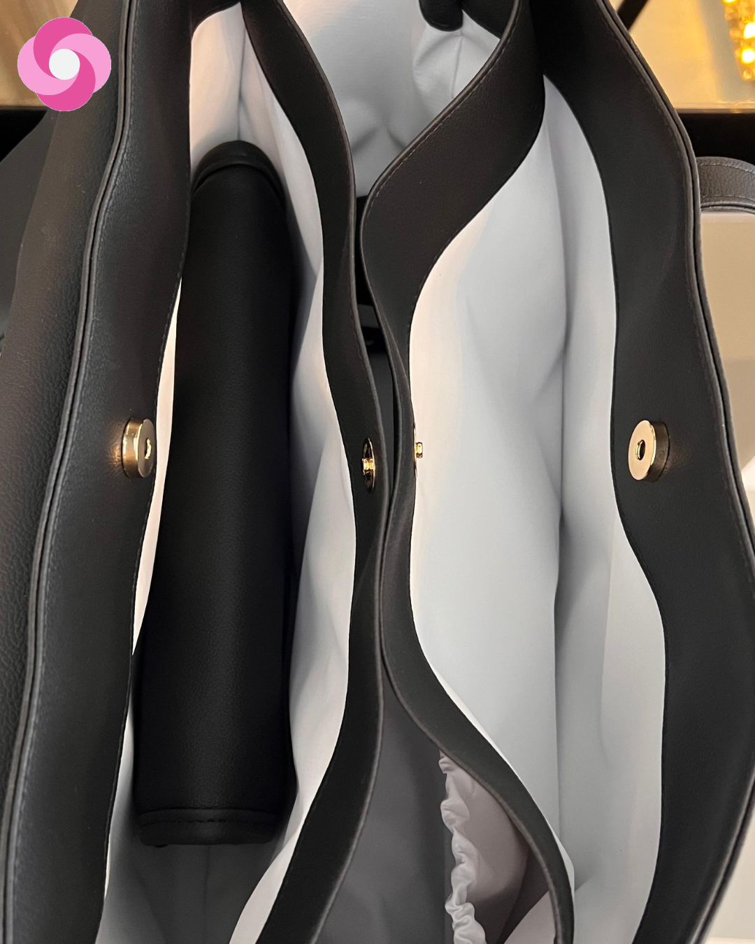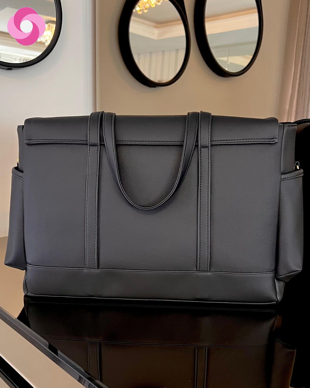 Essa é a bolsa Milano! Pensada especialmente para as mães, que mesmo na maternidade não querem sair do estilo e também aquelas que gostam de bolsas grandes (alô mamães de gêmeos)! Ela tem alça dupla, fechamento em aba com botões de imã por aproximação… É só encostar e ela fecha… Praticidade que fala né?!! Também acompanha alça transversal!