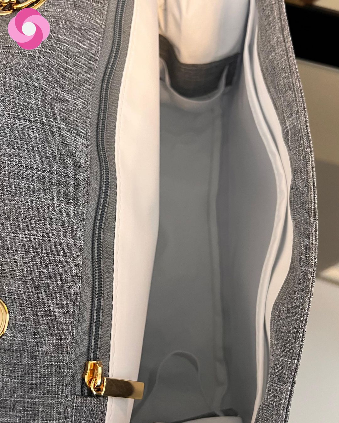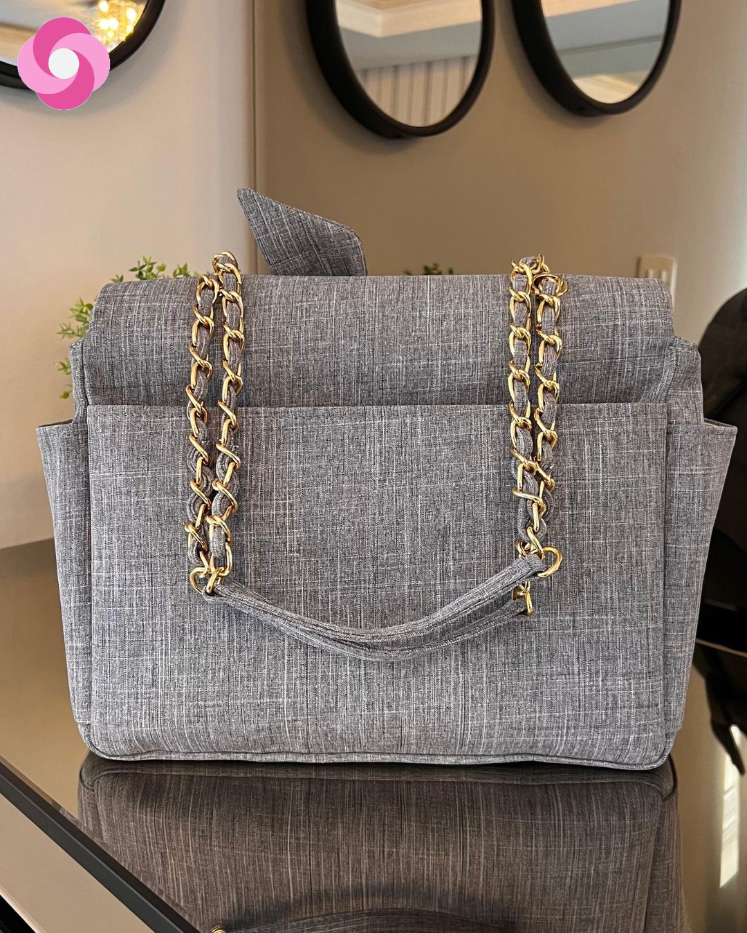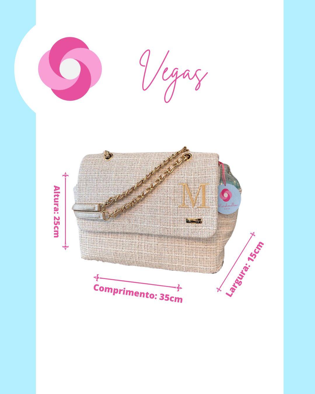 Essa é a bolsa Vegas! Pensada especialmente para as mães, que mesmo na maternidade não querem sair do estilo! Ela tem essa alça maravilhosa, de correntaria trançada, que traz um super luxo para os seus looks que pode ser usada tanto no ombro, quanto crossbody!