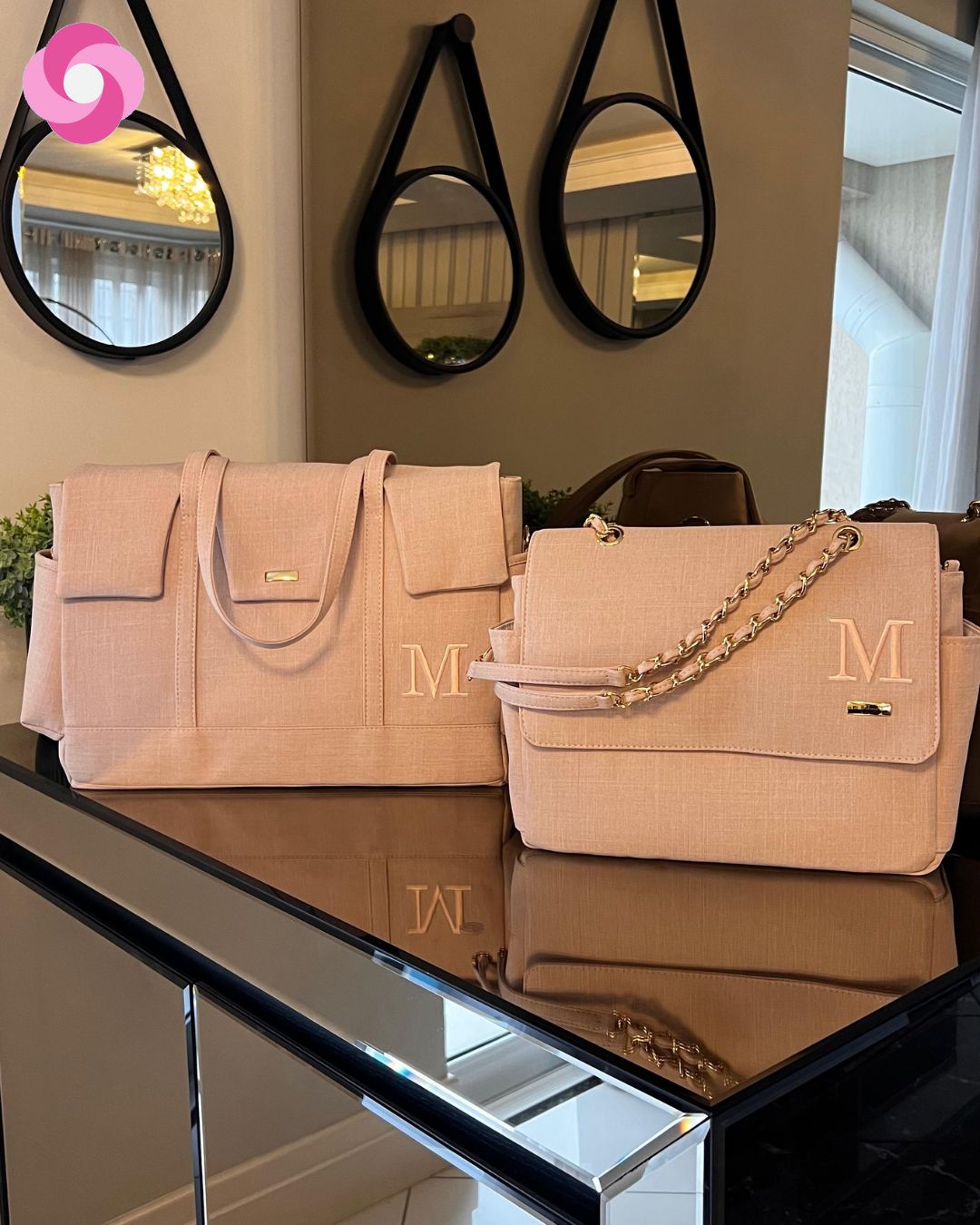 Esse kit foi produzido todo em linho rosê! O nosso linho é original, preparado para a produção de bolsas, trazendo sofisticação aliada à resistência… É perfeito!