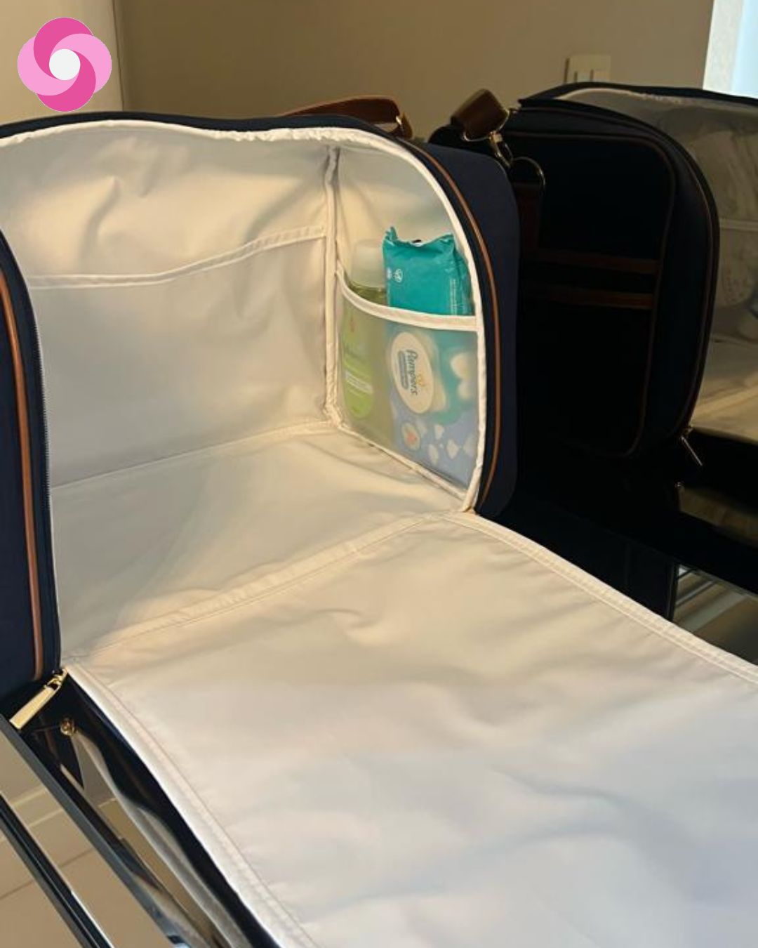 A Mala Madison é perfeita para a ida à maternidade, viagens, etc.! Contém alça de mão para transportar! Ela tem um bolso de zíper frontal e no compartimento principal ela tem 2 elásticos duplos para prender as roupinhas e um bolso de zíper para separar outros itens que você precisar!