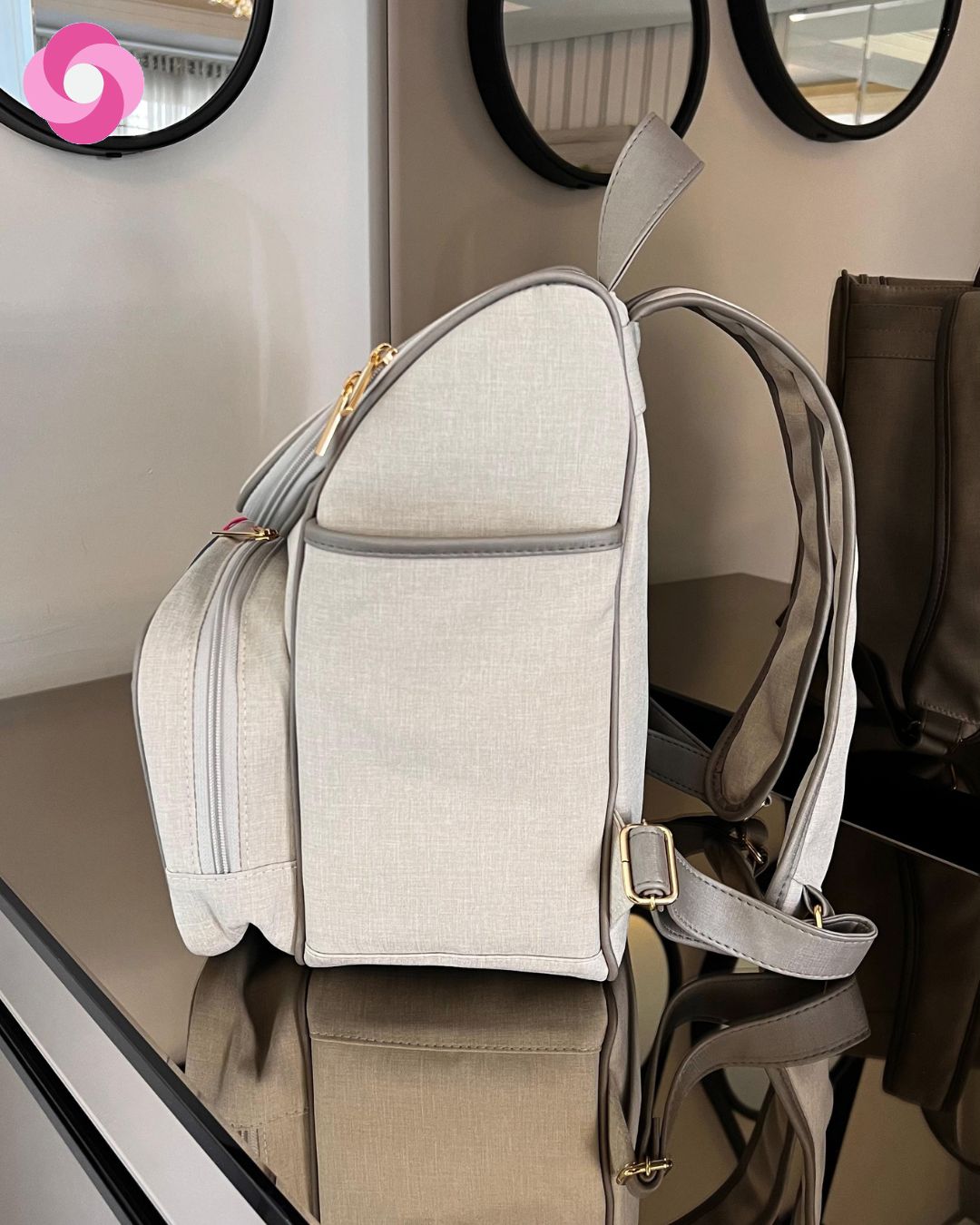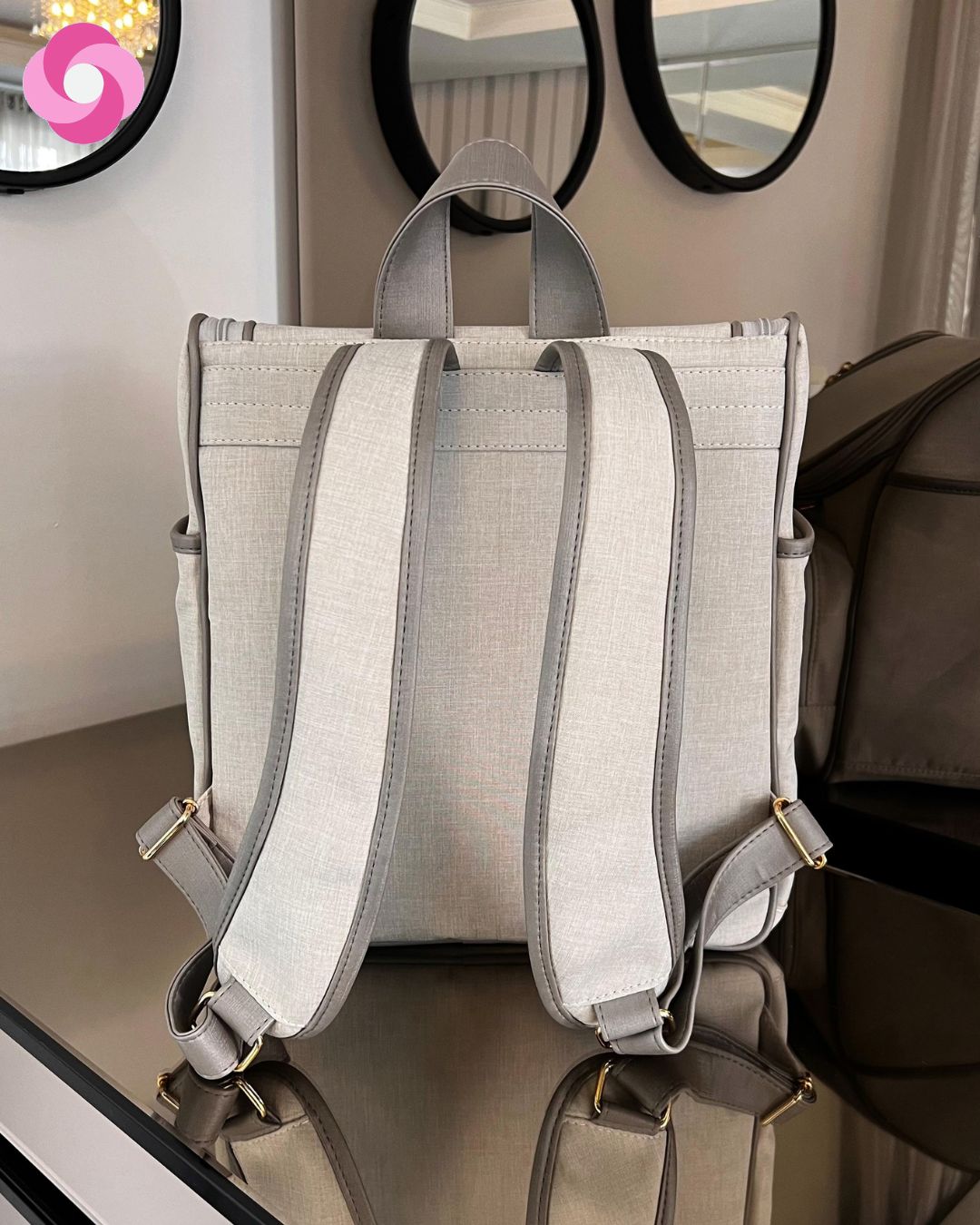 Mochila 2 em 1 com alças fixas – Linho cru com detalhes em sintético cinza chumbo