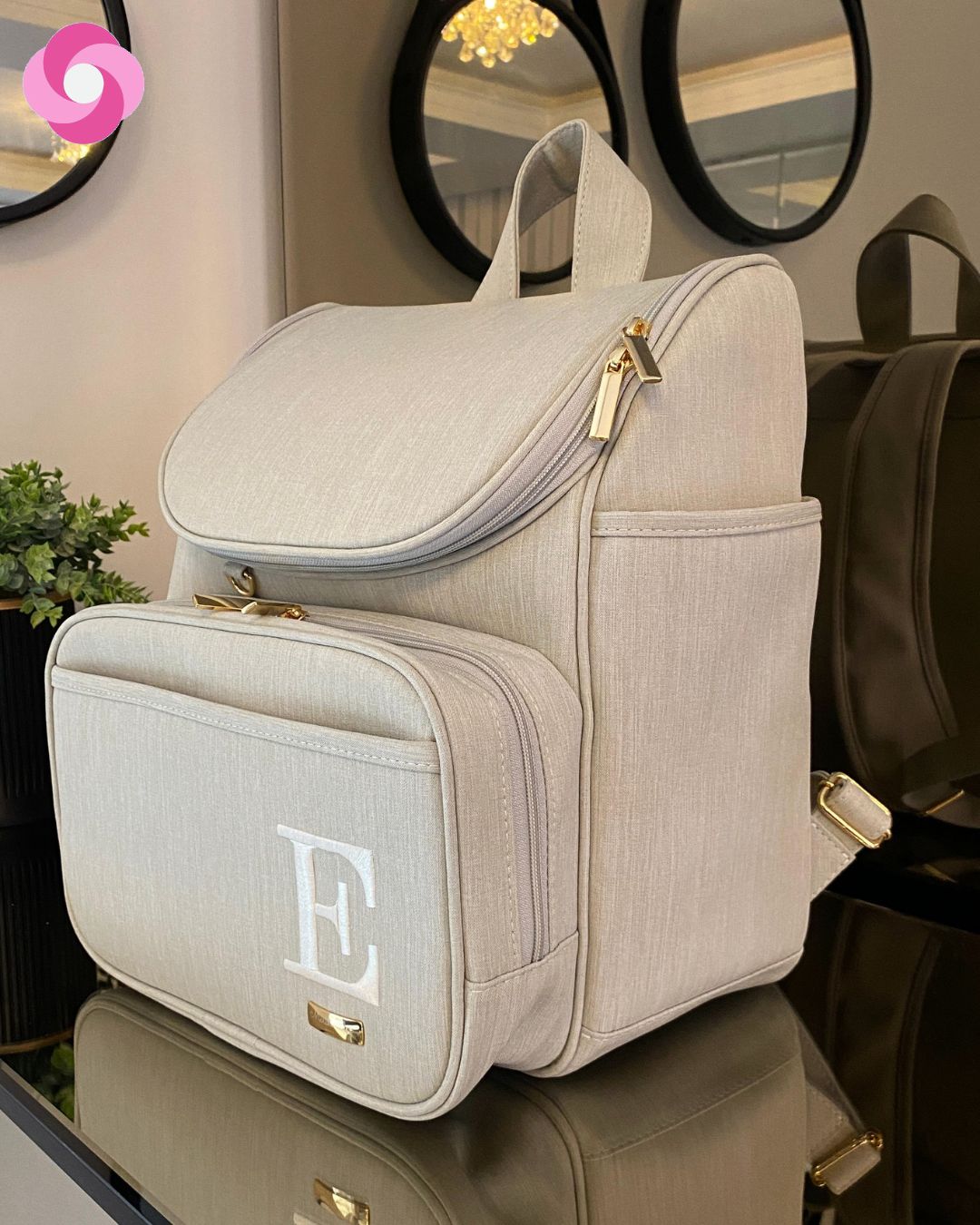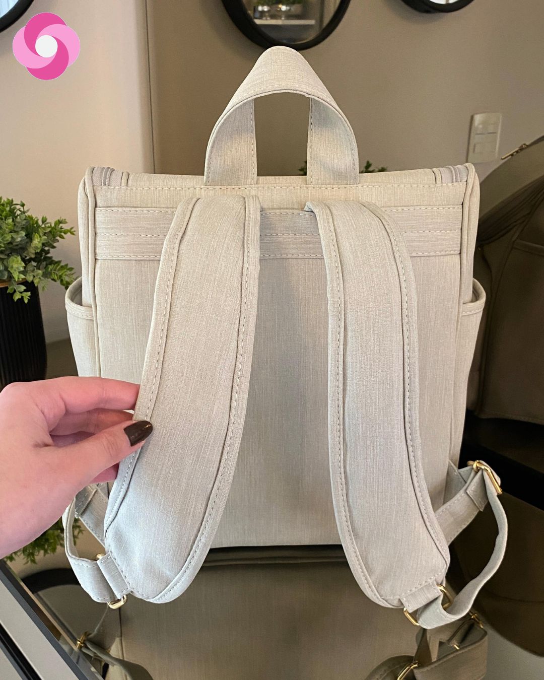 Mochila 2 em 1 com alças fixas – Linho cru com bordado offwhite